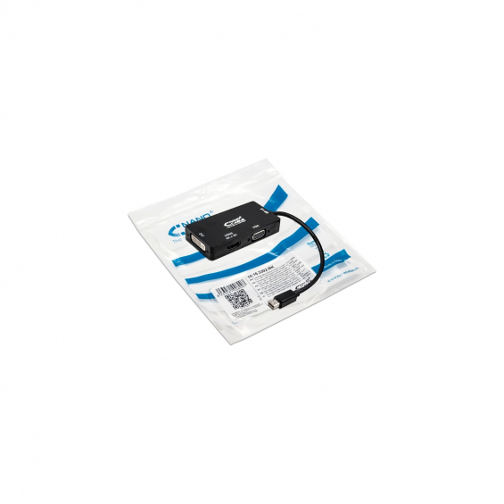- Conversor Mini Displayport a VGA / DVI / HDMI, 3 en 1, con conector Displayport macho 1.2 en un extremo y VGA hembra / DVI hembra / HDMI 4K en el otro