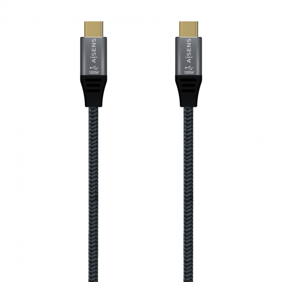 AISENS Cable USB 3.2 Gen2X2 Aluminio 20Gbps 5A 100W E-Mark, Tipo USB-C/M-USB-C/M, Gris, 2.0M