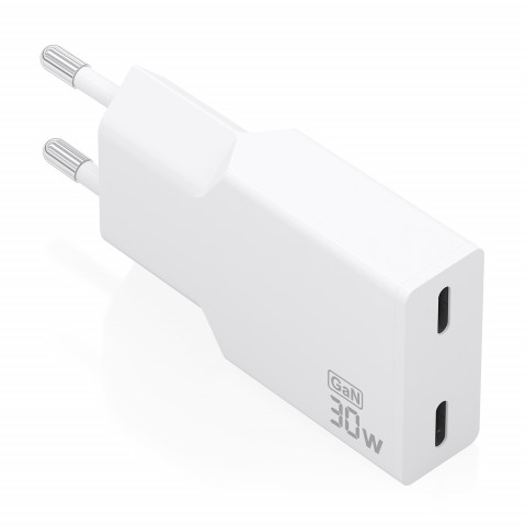 AISENS Cargador Ultra Delgado GaN 30W, 2xUSB-C PD3.0, Blanco