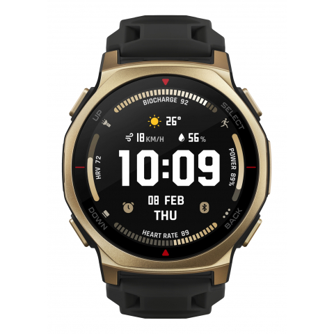 - Reloj inteligente Digital Pantalla táctil 3,35 cm (1.32") AMOLED - 466 x 466 Pixeles 3000 cd / m² - Resistente al agua Humedad: resistente al agua hasta: 45 m La resistencia al agua: 10 ATM - Micrófono incorporado Altavoces incorporados - Monitor de frecuencia cardíaca Acelerómetro Giroscopio - GPS (satélite) - Wifi Bluetooth 5.2 Comunicación de Campo Cercano (NFC) - Batería integrada 640 mAh
