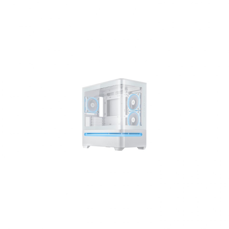 - Midi Tower PC - micro ATX, Mini-ITX - Tamaños de disco duro soportados: 2.5,3.5" - Número de bahías 2.5'': 2 Número de puertos 3.5": 2 - Ventana lateral Iluminación Multi Panel(es) de vidrio templado Filtro anti-polvo - Blanco