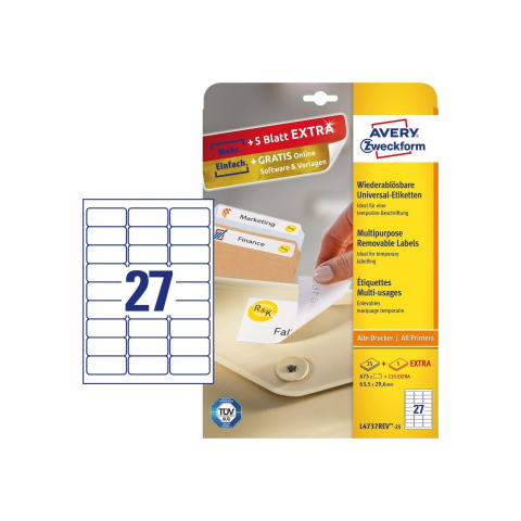 Avery L4737REV-25 etiqueta autoadhesiva Rectángulo redondeado Desmontable Blanco 810 pieza(s)