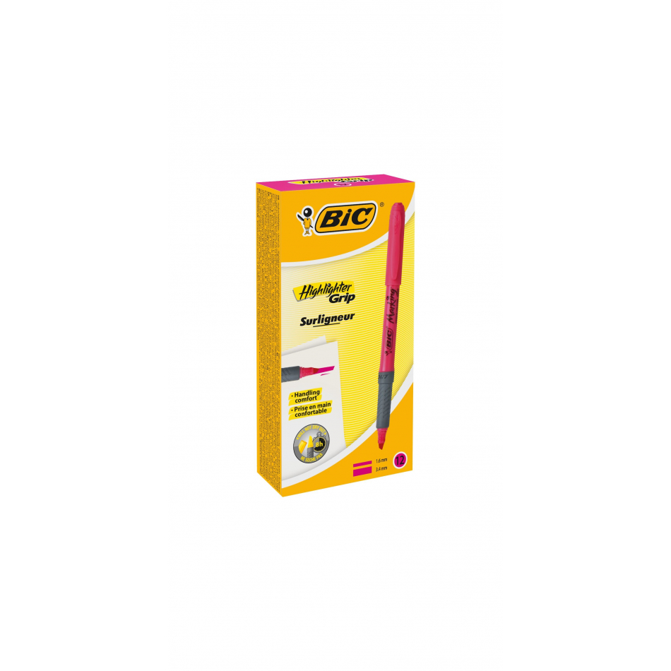 BIC Highlighter Grip marcador 12 pieza(s) Punta de cincel Rosa