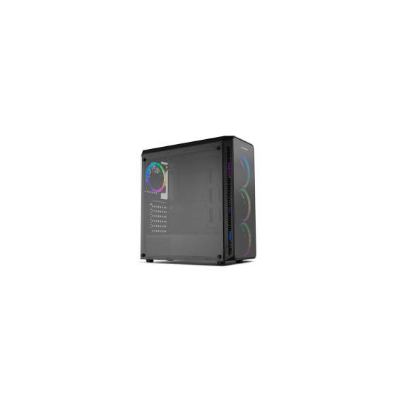 - Paneles frontal, laterales y superior de cristal templado - 4 ventiladores de 120 mm RGB Rainbow pre-instalados - Espacio para instalar hasta 6 ventiladores - Compartimento aislado para PSU y discos duros - Posibilidad de sincronización RGB con la placa base