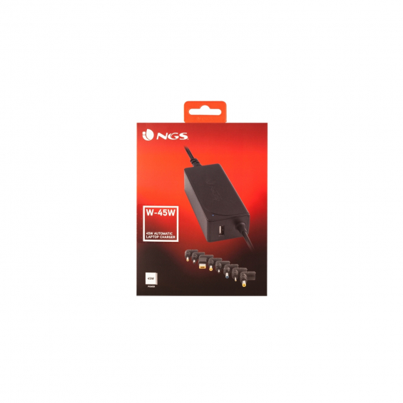 Se acabaron los problemas por falta de baterÍa en el ordenador. El nuevo dispositivo de NGS, W-45W es un cargador automático universal de gran durabilidad con energÍa de salida de 45 W que te permitirá alimentar la baterÍa de tu ordenador en cualquier momento. Ya no será necesario preocuparse por la duración de la baterÍa del portátil, ya que NGS presenta la solución para los viajeros que siempre llevan sus ordenadores en sus desplazamientos. NGS W-45W es ideal para viajar, tiene un diseño compacto y funciona a 100-240V ~50/60 Hz, 2A (Max).