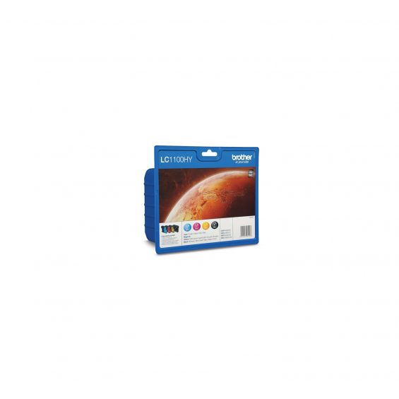 Brother LC-1100HYVALBP. Colores de impresión: Negro, Cian, Magenta, Amarillo, Tipo de cartucho de tinta: Alto, TecnologÍa de impresión: Inyección de tinta. Peso: 297g. Dimensiones del embalaje (alto x alto x peso): 125 x 165 x 50 mm, Tipo de embalaje: Ampolla. Impresoras: DCP-6690CW, MFC-5890CN, MFC-5895CW, MFC-6490CW, MFC-6890CDW .