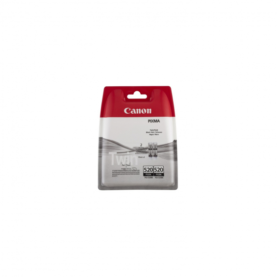 Canon PGI-520BK Twin Pack. Colores de impresión: Negro, Productos compatibles: PIXMA MX870 PIXMA MX860 PIXMA IP3600 PIXMA MP630, TecnologÍ­a de impresión: Inyección de tinta. Tipo de embalaje: Ampolla. Twin Pack 2 unidades. Color de impresión: Negro. Compatibilidad con: PIXMA MX870 PIXMA MX860 PIXMA IP3600 PIXMA MP630