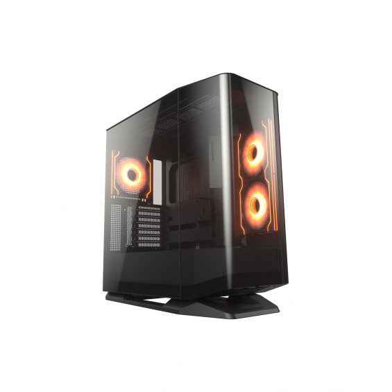 - Compatible con placas base E-ATX de última generación y con capacidad para GPUs de 420 mm, con soportes giratorios para opciones de orientación horizontal/vertical