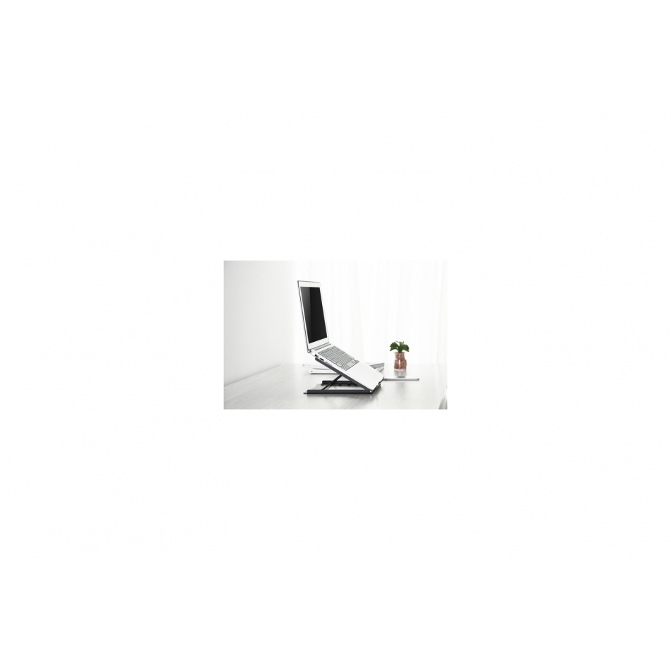 - Para portátiles de 10 a 15" - Altura: 20,7 a 26,7 cm - Ángulo del soporte regulable en 5 niveles - Ventilación óptima a través de la estructura de marco abierto - Capacidad de carga: 5 kg - Color: Negro - Material: Metal - Dimensiones: 25,5 x 25,5 x 3,5 cm (la. x an. x pr.) - Peso: 0,62 kg