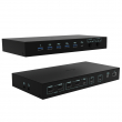 - Con dos selectores de salida, los usuarios pueden elegir fácilmente si desean utilizar ambos monitores con un solo host o trabajar con dos hosts simultáneamente, lo que permite aprovechar todo el potencial de la productividad de doble host