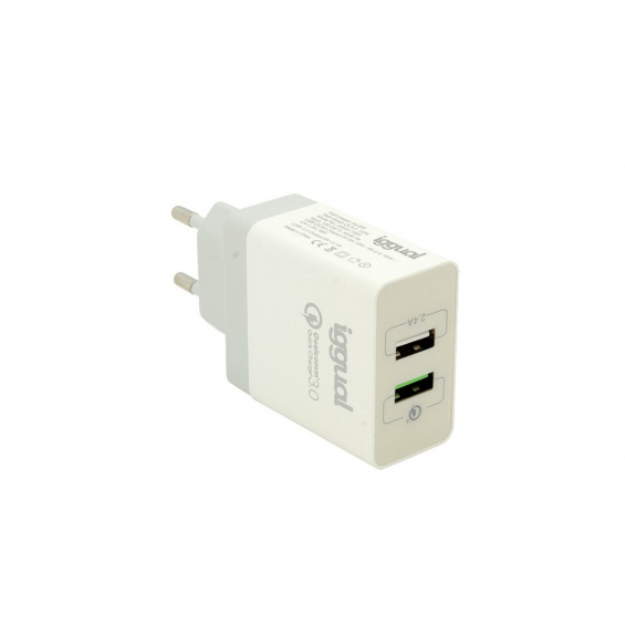 iggual Cargador pared usb 2.0 x2 carga rapida QC3.0 30w blanco