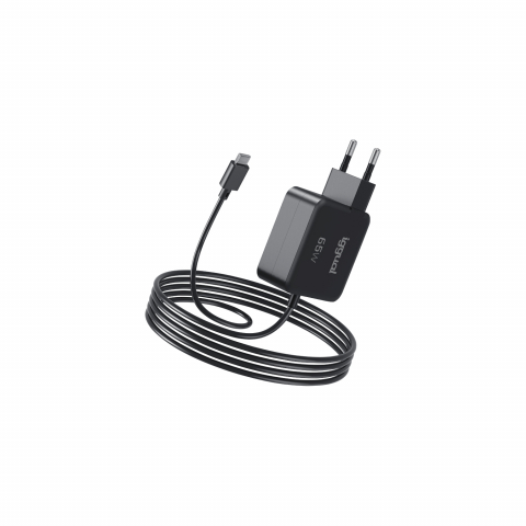 - Compatibilidad del cargador: Universal - Tipo de cargador: Interior - Alimentación: Corriente alterna - Negro Material de la carcasa: Elastómero termoplástico (TPE) - Longitud de cable: 1,8 m - Carga rápida Sobreintensidad, Sobrevoltaje, Sobrecalentamiento, Cortocircuito - 100 - 240 V 50/60 Hz 65 W Voltaje de salida máximo: 15 V