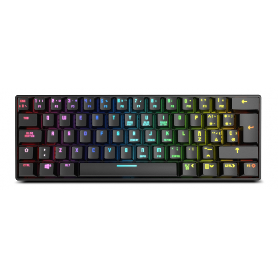 - Teclado mecánico con switches de alta calidad - Diseño en formato 60% - Antighosting completo y modo juego - Teclas con retroiluminación RGB - 17 efectos de iluminación configurables - Conexión Bluetooth 5.0 y por cable (USB) - Configuración del teclado sin software - Compatible con Windows, Android, IOS y Mac