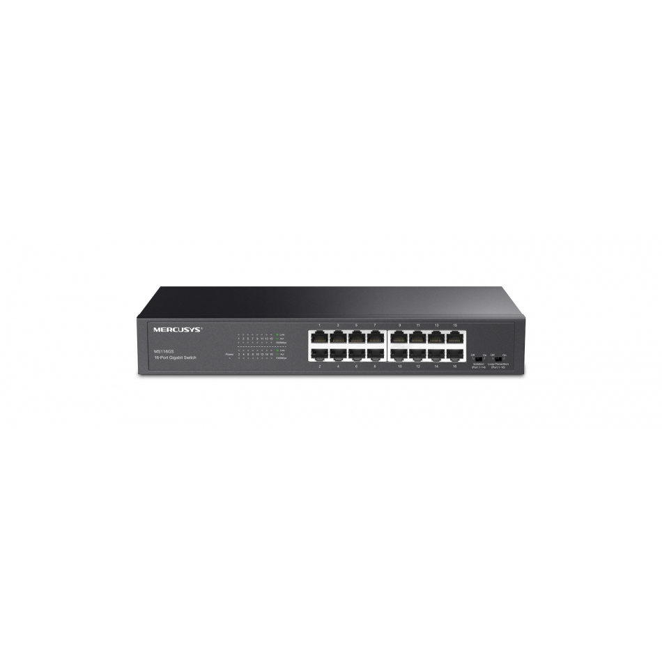 - Cantidad de puertos básicos de conmutación RJ-45 Ethernet: 16 - Tabla de direcciones MAC: 8000 entradas Capacidad de conmutación: 32 Gbit/s - Montaje en rack - Corriente alterna