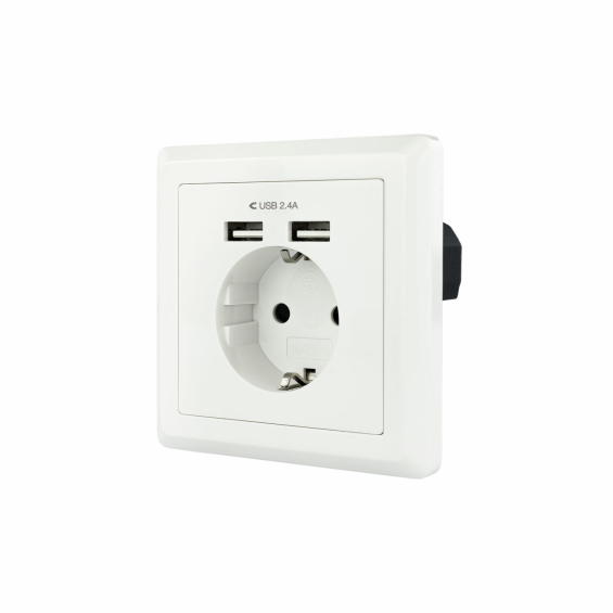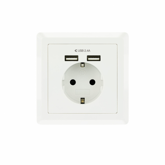 Nanocable Base de enchufe de pared tipo schuko con 2 tomas USB Max. 2.4A, blanca