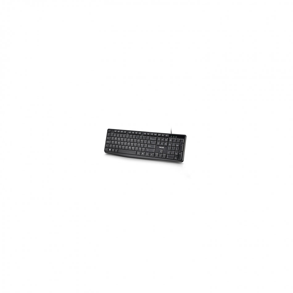 - Este teclado estándar se conecta mediante USB e incluye teclas FN junto a 12 accesos directos para controlar funciones multimedia de forma rápida.