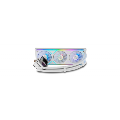 - Compatible con Intel y AMD - Pantalla LCD magnética personalizable - Espejo infinito en la parte superior e inferior - Tres ventiladores de 120 mm PWM - Iluminación ARGB - Radiador triple de aluminio - Fácil montaje e instalación