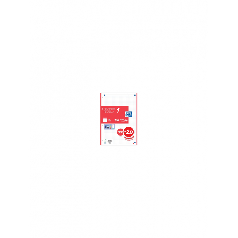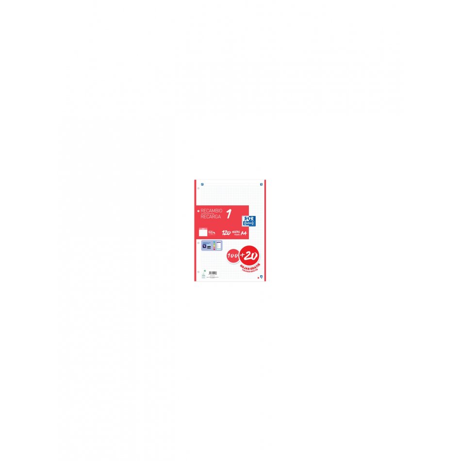 Oxford Recambio 100H + 20H Gratis 4 Taladros A4 90Gr 5X5 1 Banda Rojo