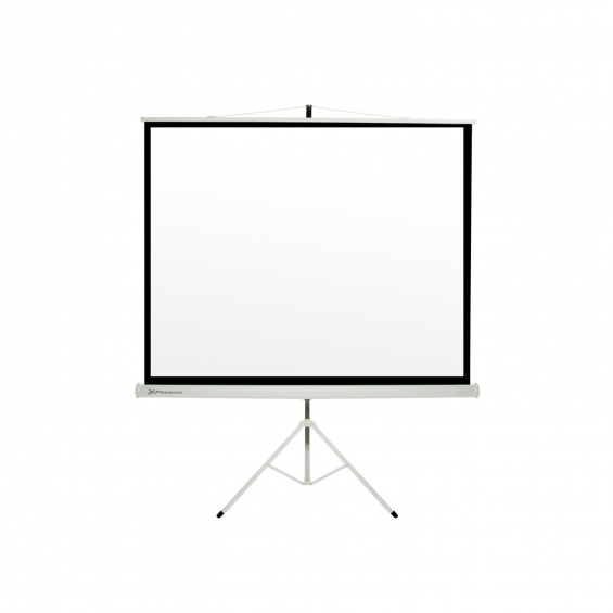 Pantalla manual tripode videoproyector phoenix 80p 1.45mx1.45m posicion ajustable carcasa blanca tela super resistente PHPANTALLATRIP-145