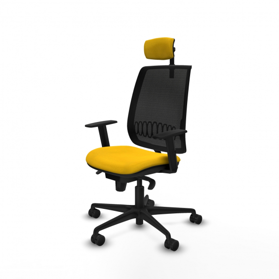 Piqueras y Crespo Alares sincro malla negra bali amarillo brazos 1D base nailon cabecero 2D ruedas 65 mm nailon