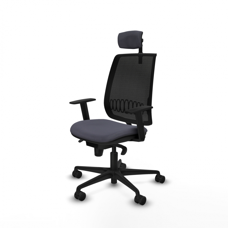 Piqueras y Crespo Alares sincro malla negra bali gris oscuro brazos 1D base nailon cabecero 2D ruedas 65 mm nailon