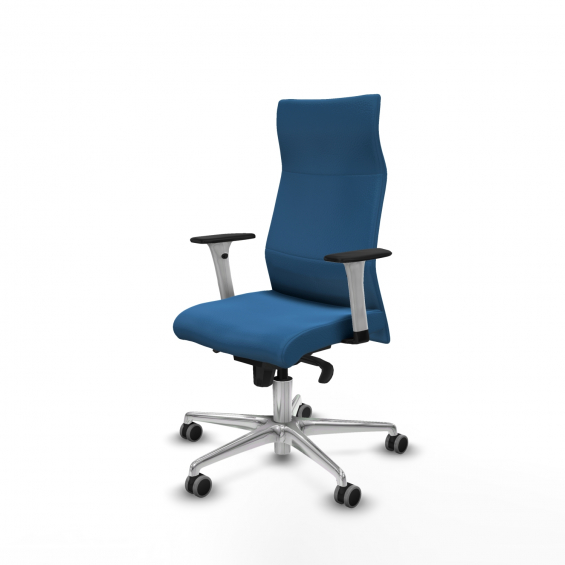 Piqueras y Crespo Albacete direcci?n sincro similpiel azul claro brazos 1D blancos base aluminio ruedas 65 engomadas