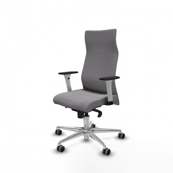 Piqueras y Crespo Albacete direcci?n sincro similpiel gris brazos 1D blancos base aluminio ruedas 65 engomadas