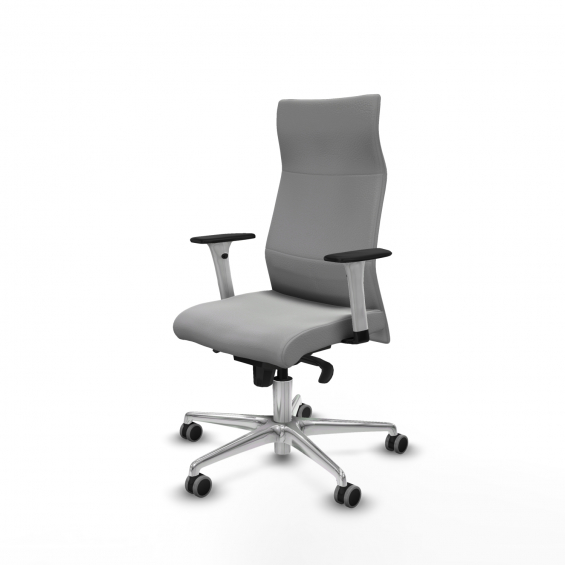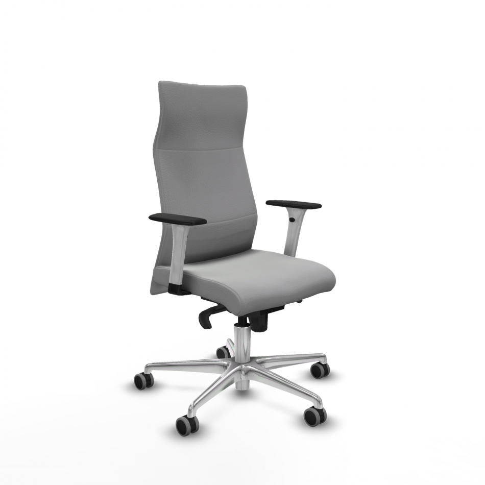Piqueras y Crespo Albacete direcci?n sincro similpiel gris claro brazos 1D blancos base aluminio ruedas 65 engomadas