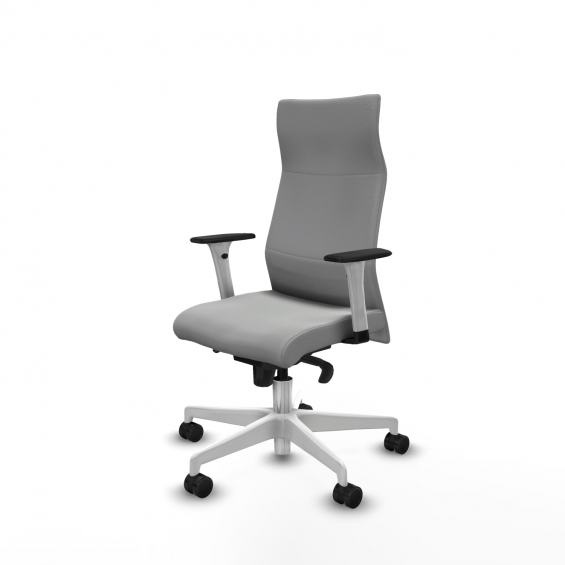 Piqueras y Crespo Albacete direcci?n sincro similpiel gris claro brazos 1D blancos base blanca ruedas 65 nailon