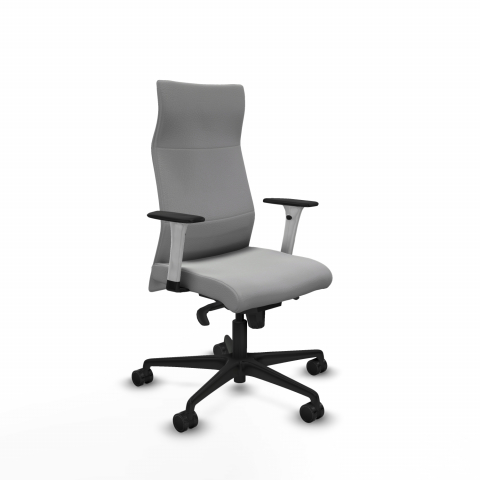 Piqueras y Crespo Albacete direcci?n sincro similpiel gris claro brazos 1D blancos base nailon ruedas 65 nailon