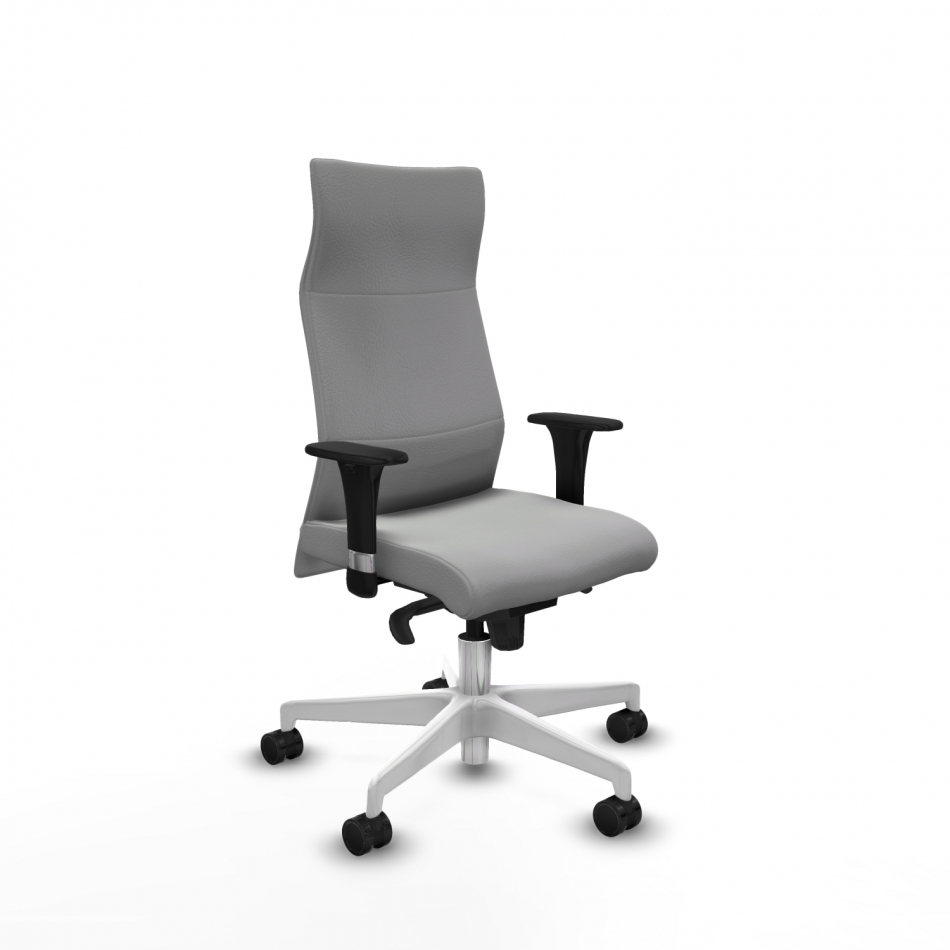 Piqueras y Crespo Albacete direcci?n sincro similpiel gris claro brazos 1D cromados base blanca ruedas 65 nailon