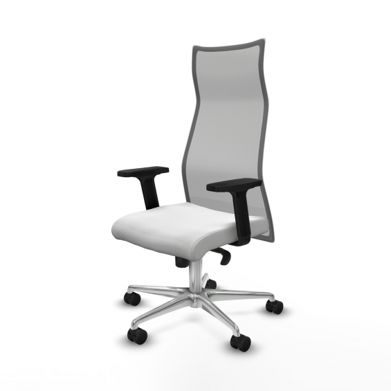 Piqueras y Crespo Albacete malla sincro malla gris bali blanco brazos 2D base aluminio ruedas 65 mm nailon