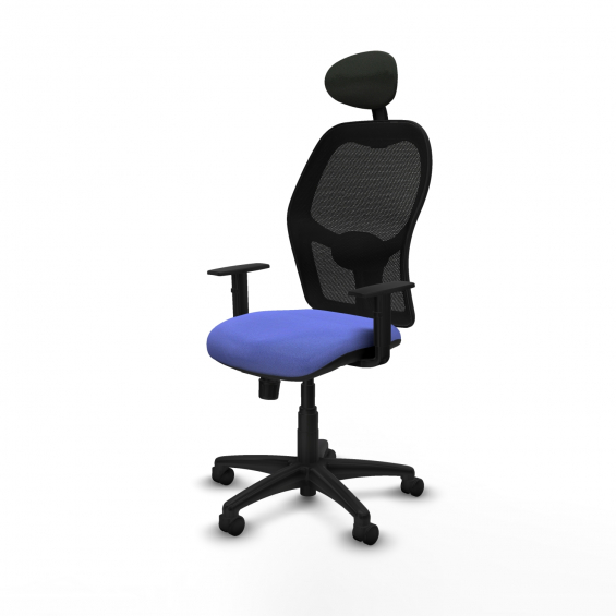 Piqueras y Crespo Aloc?n sincro malla negra bali azul claro brazos 1D base poliamida cabecero fijo ruedas nailon 50mm