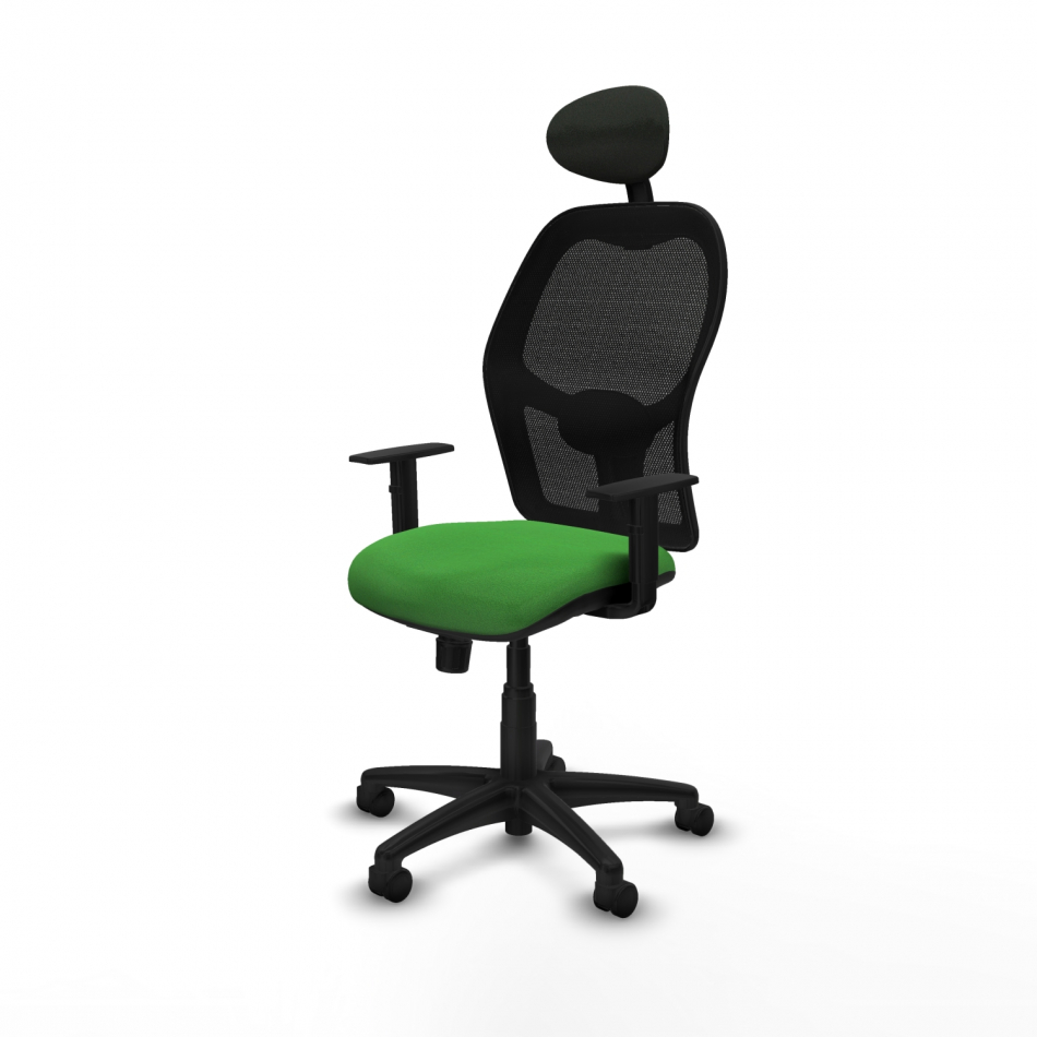 Piqueras y Crespo Aloc?n sincro malla negra bali verde brazos 1D base poliamida cabecero fijo ruedas nailon 50mm