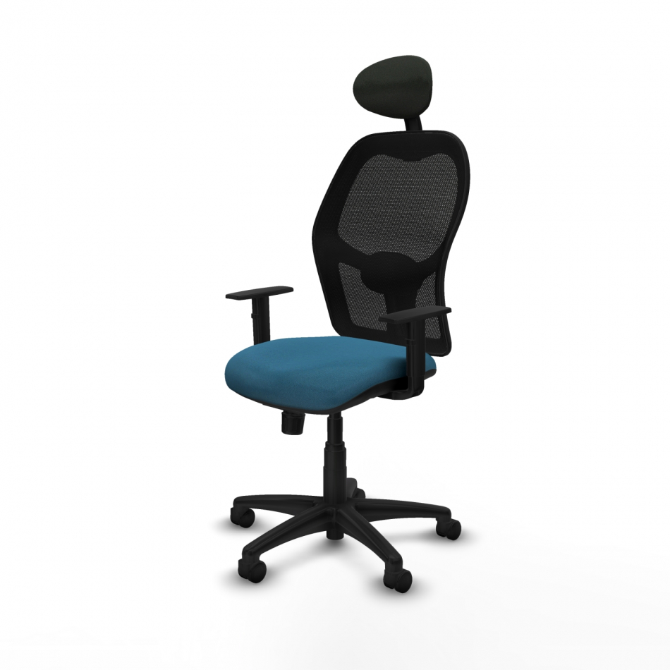 Piqueras y Crespo Aloc?n sincro malla negra bali verde petroleo brazos 1D base poliamida cabecero fijo ruedas nailon 50mm