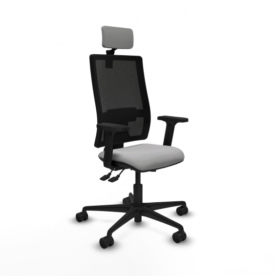 Piqueras y Crespo Bormate asincro malla negra bali gris claro brazos 2D base nailon cabecero 2D ruedas 65mm nailon