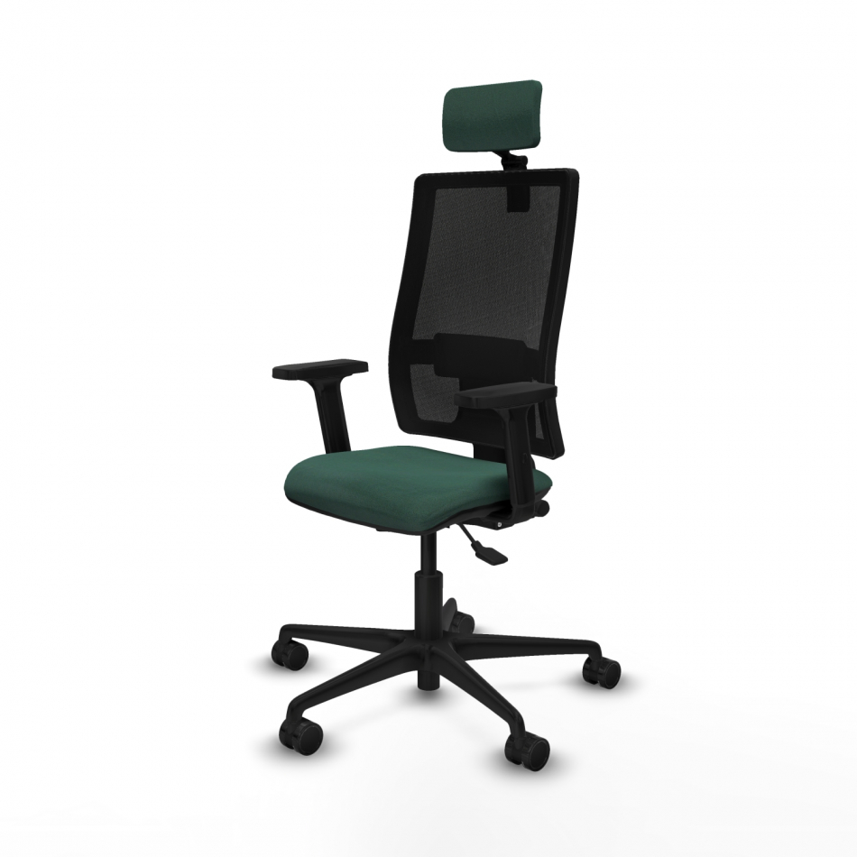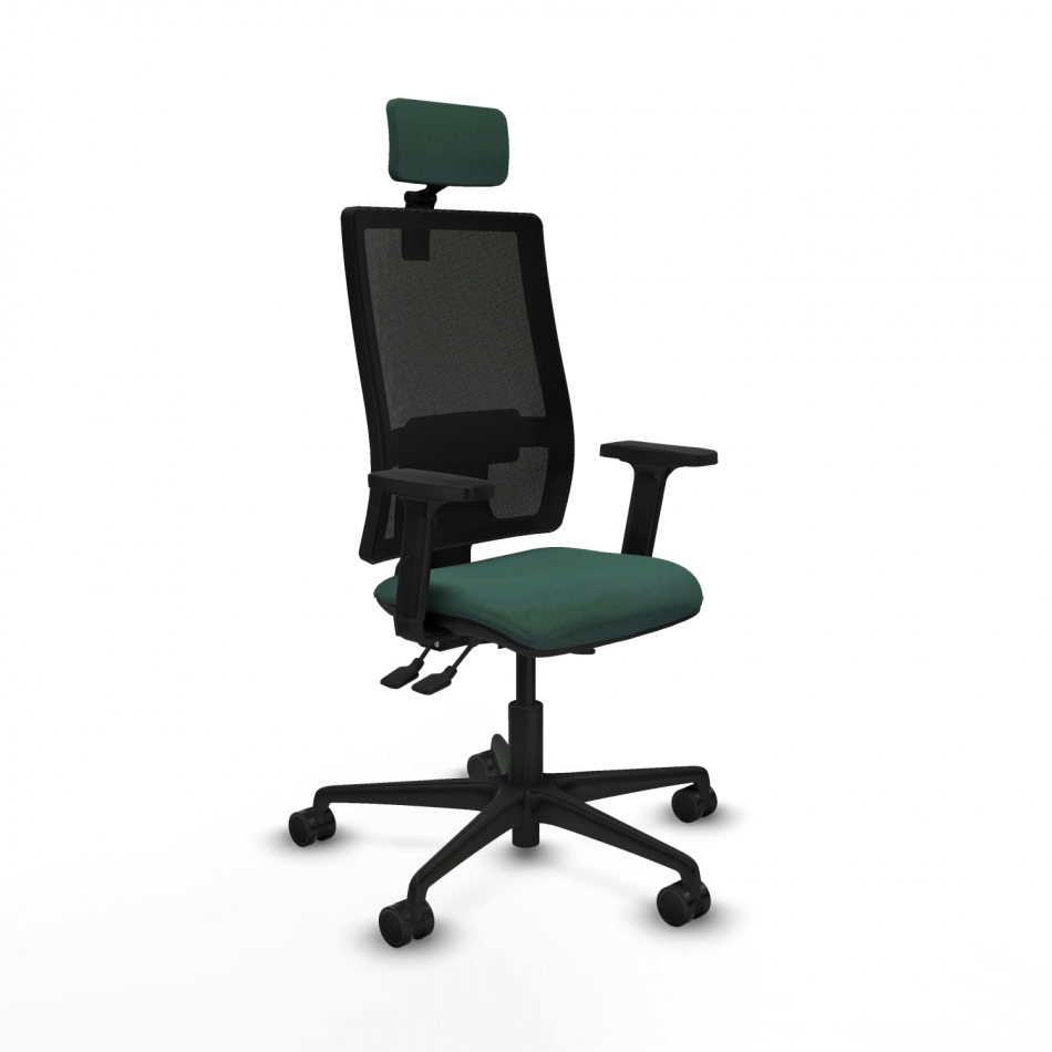 Piqueras y Crespo Bormate asincro malla negra bali verde botella brazos 2D base nailon cabecero 2D ruedas 65mm nailon