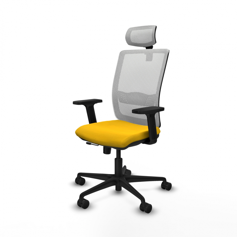 Piqueras y Crespo Haches traslack malla blanca bali amarillo brazos 2D base nailon cabecero malla 2D ruedas 65mm nailon
