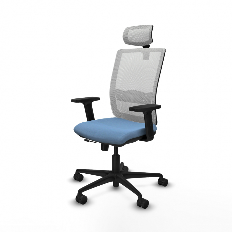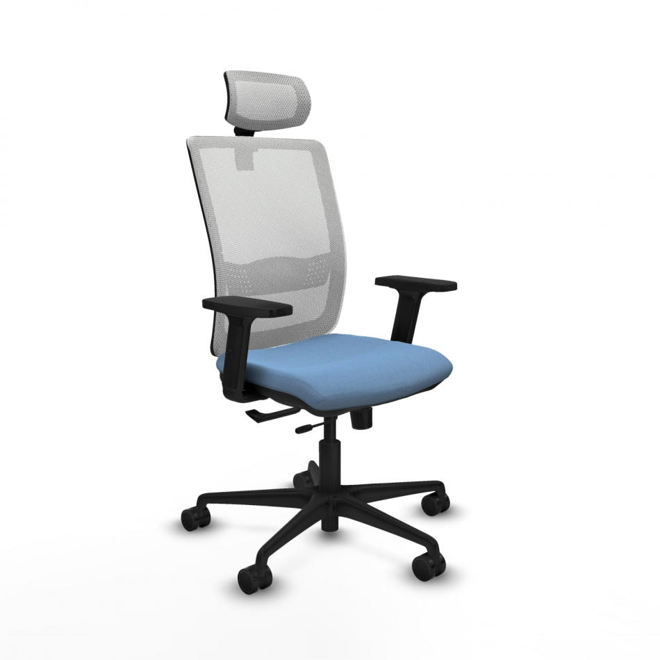 Piqueras y Crespo Haches traslack malla blanca bali azul cielo brazos 2D base nailon cabecero malla 2D ruedas 65mm nailon