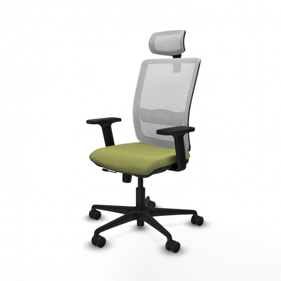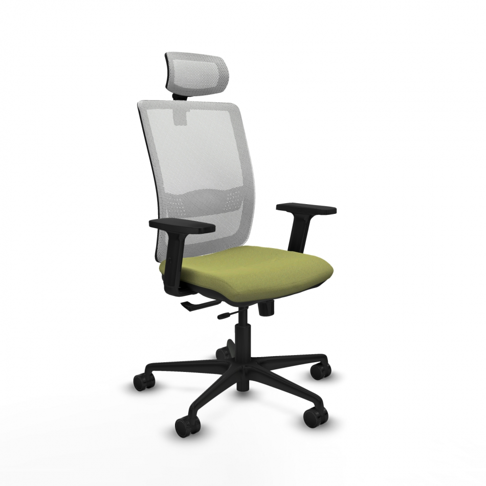 Piqueras y Crespo Haches traslack malla blanca bali verde oliva brazos 2D base nailon cabecero malla 2D ruedas 65mm nailon