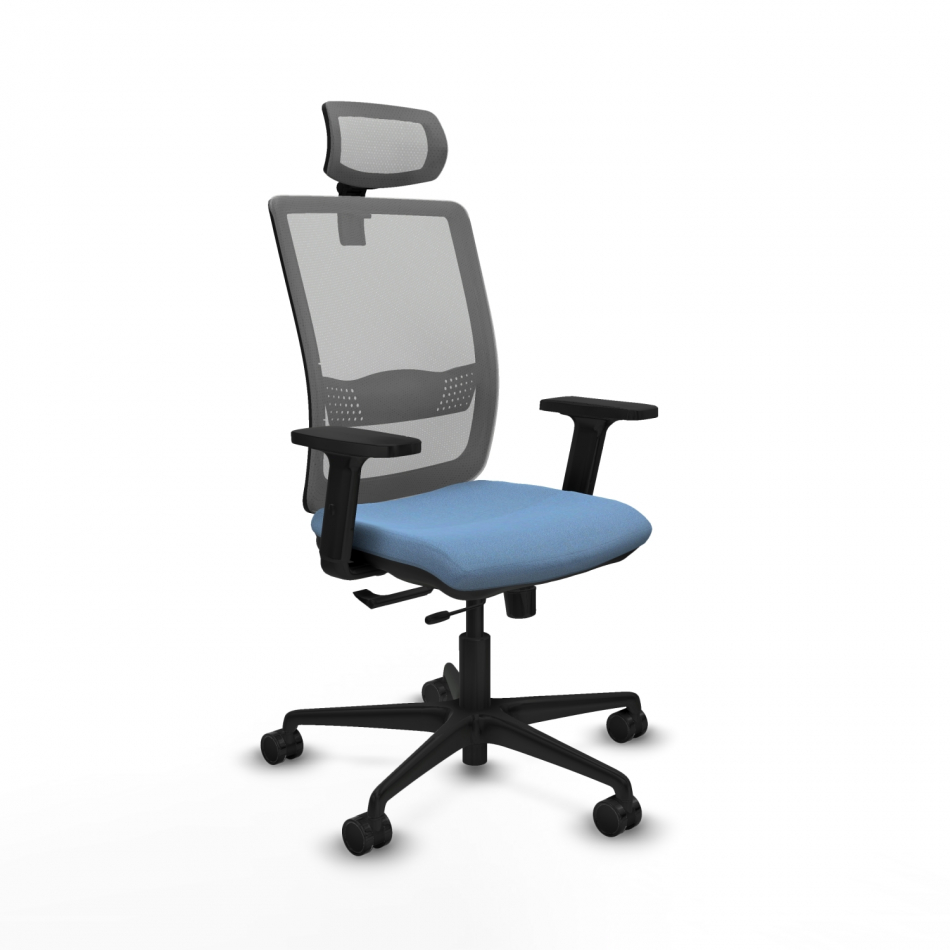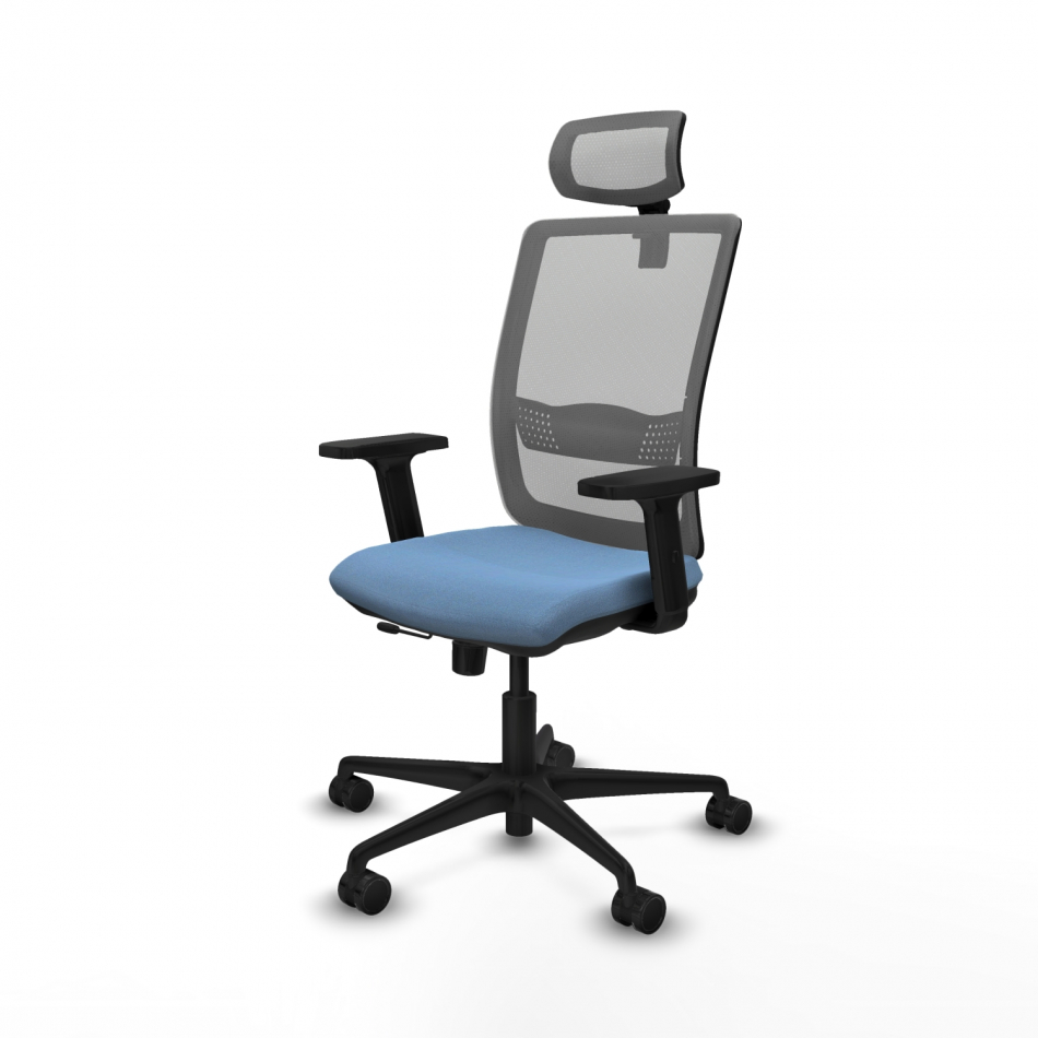 Piqueras y Crespo Haches traslack malla gris bali azul cielo brazos 2D base nailon cabecero malla 2D ruedas 65mm nailon
