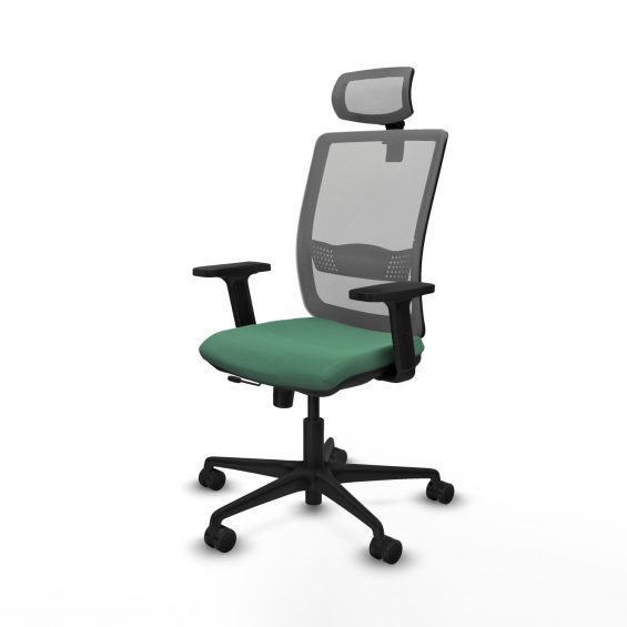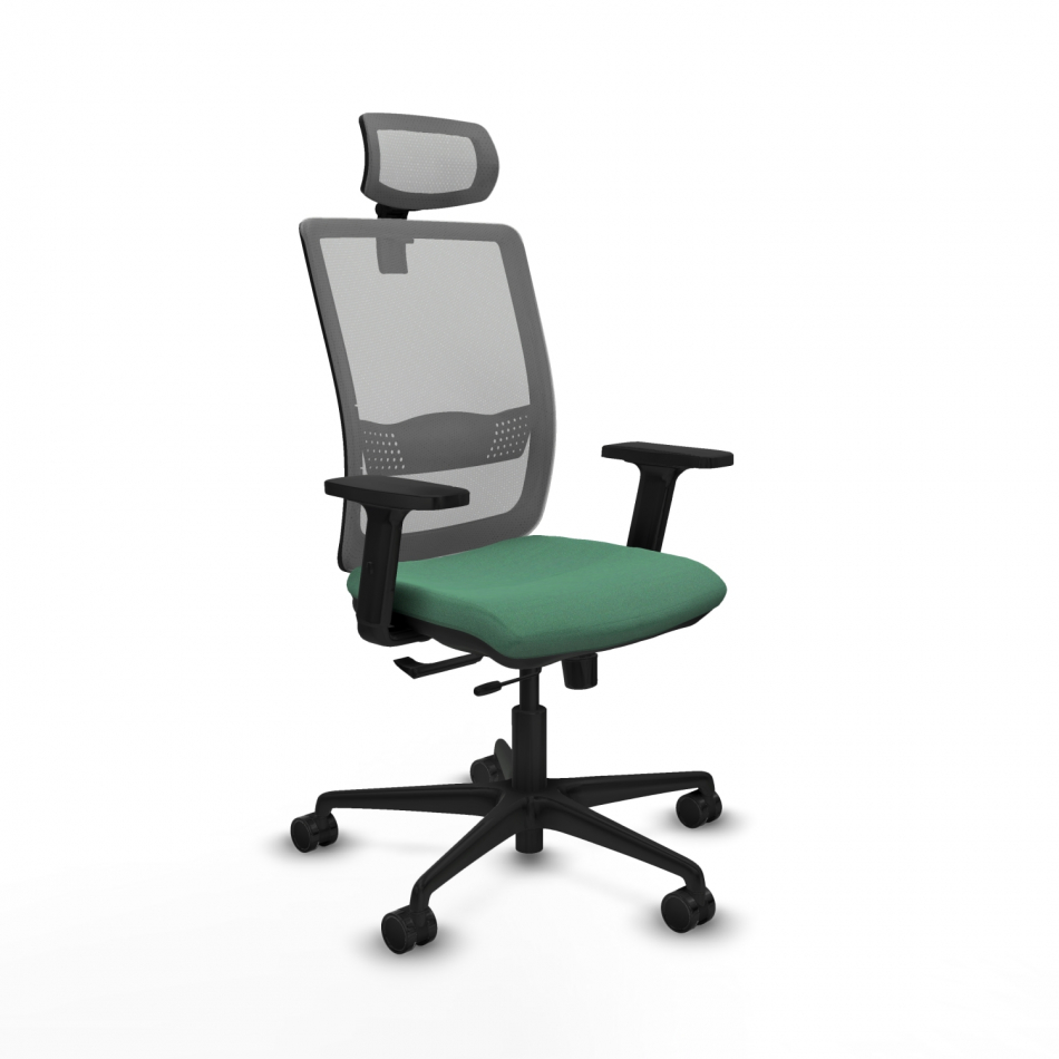 Piqueras y Crespo Haches traslack malla gris bali verde esmeralda brazos 2D base nailon cabecero malla 2D ruedas 65mm nailon