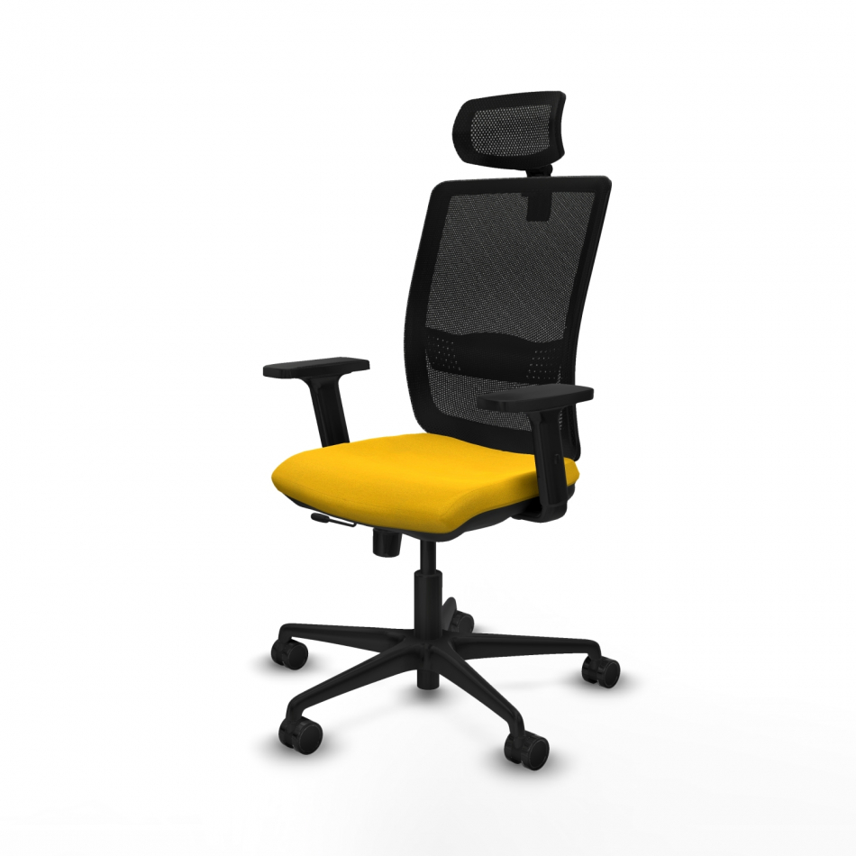 Piqueras y Crespo Haches traslack malla negra bali amarillo brazos 2D base nailon cabecero malla 2D ruedas 65mm nailon