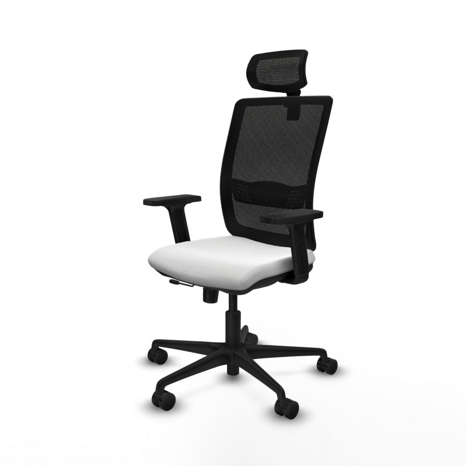 Piqueras y Crespo Haches traslack malla negra bali blanco brazos 2D base nailon cabecero malla 2D ruedas 65mm nailon