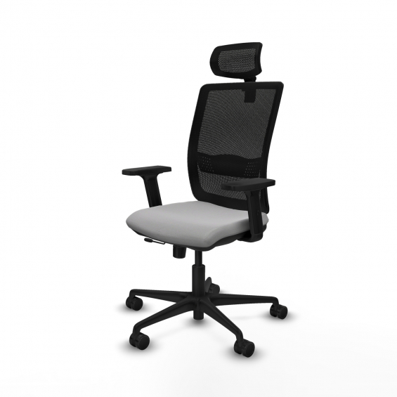Piqueras y Crespo Haches traslack malla negra bali gris claro brazos 2D base nailon cabecero malla 2D ruedas 65mm nailon