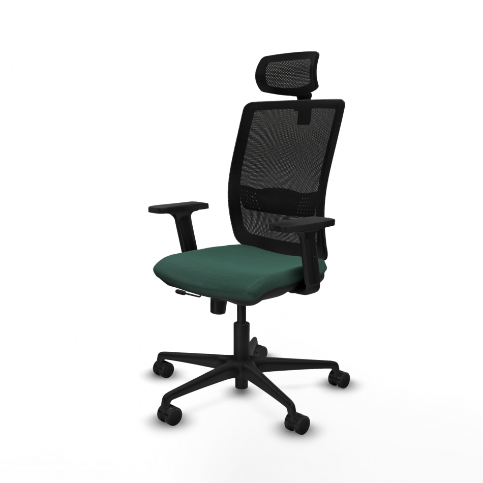 Piqueras y Crespo Haches traslack malla negra bali verde botella brazos 2D base nailon cabecero malla 2D ruedas 65mm nailon