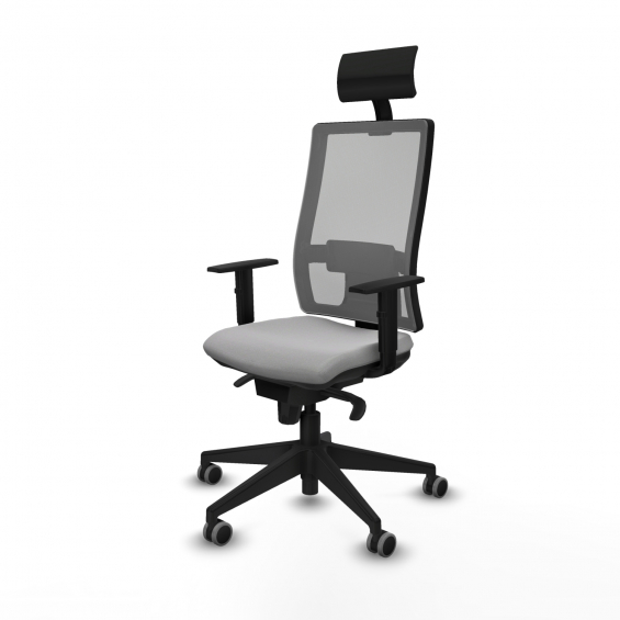 Piqueras y Crespo Horna sincro malla gris bali gris claro brazos 1D base piramidal cabecero fijo ruedas 65mm engomadas