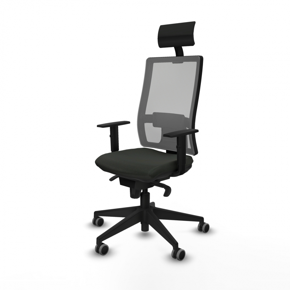 Piqueras y Crespo Horna sincro malla gris bali negro brazos 1D base piramidal cabecero fijo ruedas 65mm engomadas