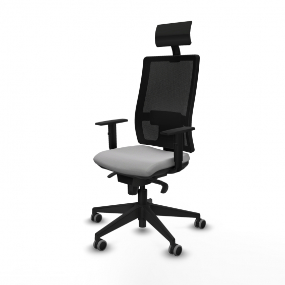 Piqueras y Crespo Horna sincro malla negra bali gris claro brazos 1D base piramidal cabecero fijo ruedas 65mm engomadas