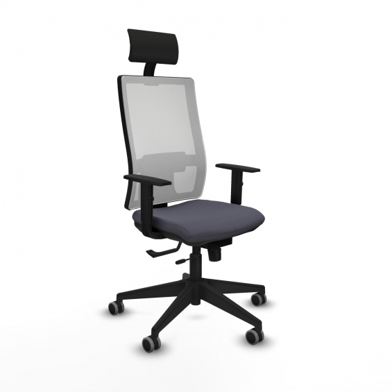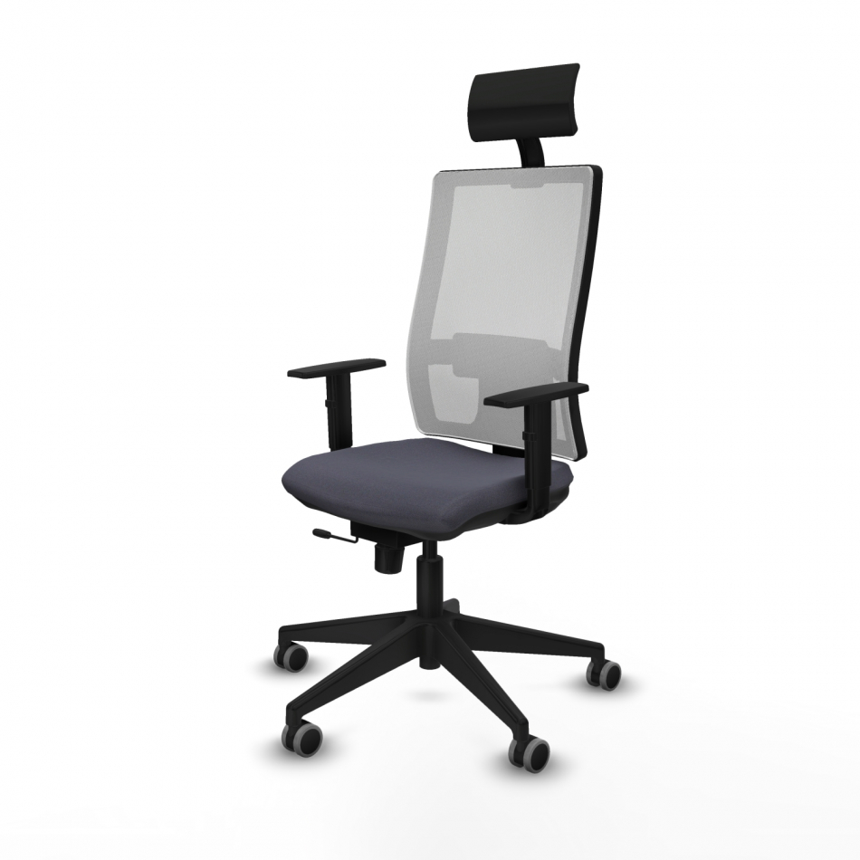 Piqueras y Crespo Horna traslack malla blanca bali gris oscuro brazos 1D base piramidal cabecero fijo ruedas 65mm engomadas
